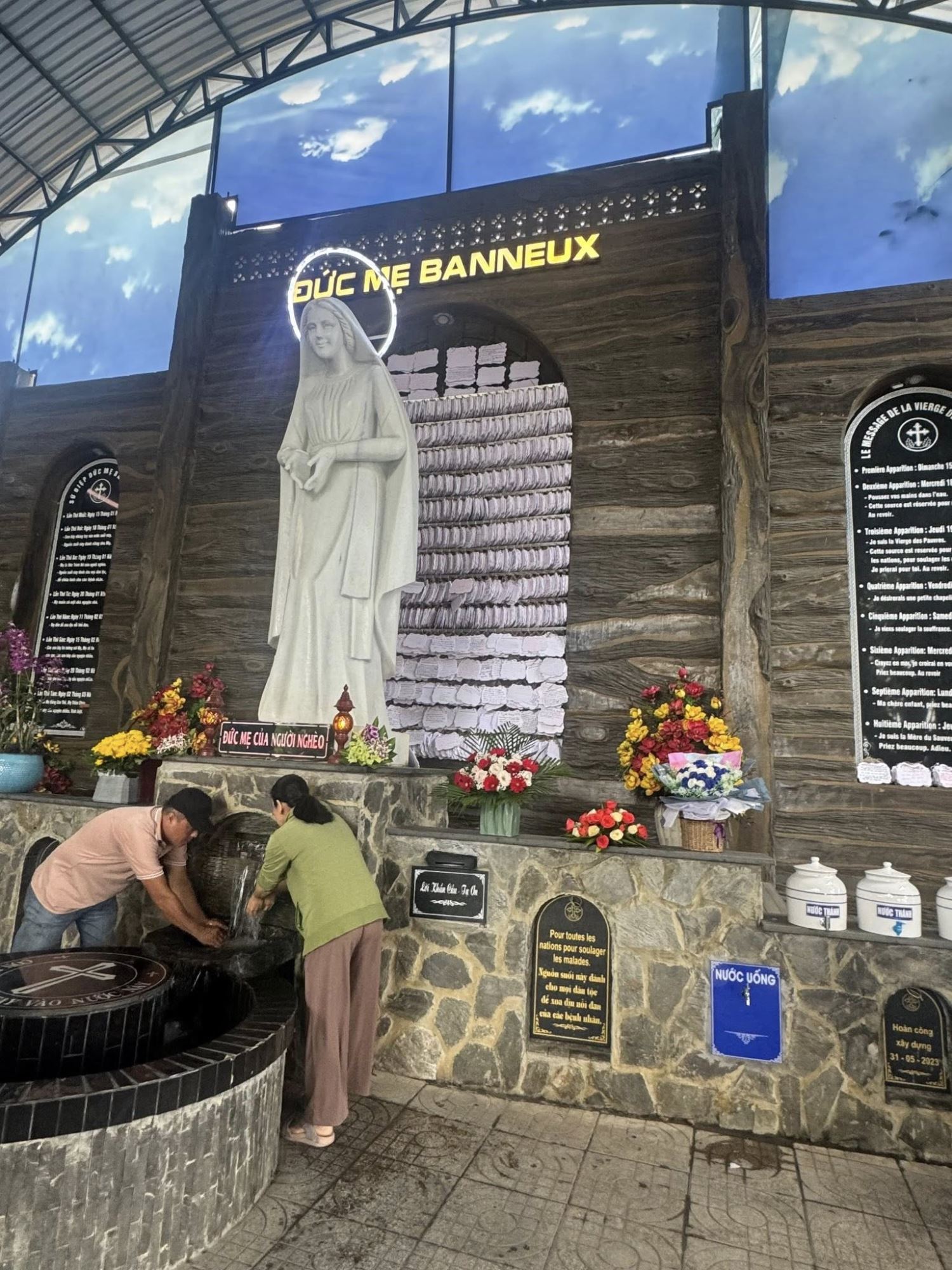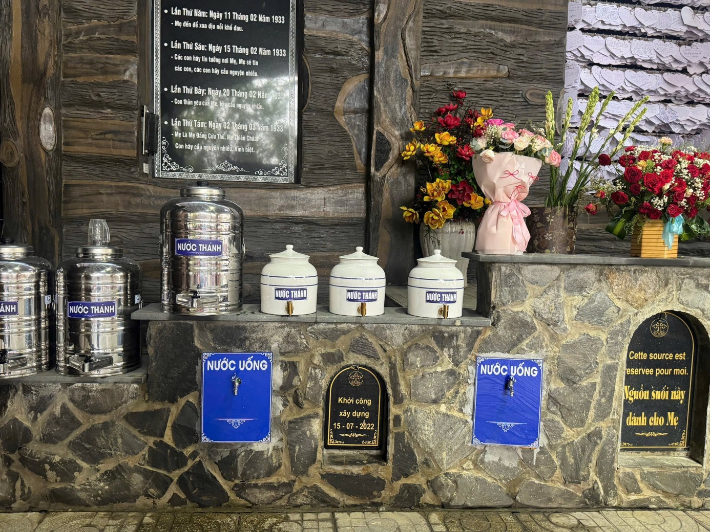 Địa chỉ thứ hai chúng ta đến là Đài Đức Mẹ Người Nghèo. Khi đến nơi đây, chúng tôi được đắm mình trong làn nước mát lành của ân sủng. Dòng nước chảy dưới chân tượng Mẹ – nhẹ nhàng, trong vắt – tựa như đang gột rửa đi bao lo lắng, u sầu. Tôi đưa tay hứng lấy làn nước ấy, như thể đang đón nhận chính ơn thánh từ trời cao, để tâm hồn được tẩy sạch, được đổi mới. Dường như dòng nước ấy cuốn đi mọi lo toan ưu phiền của cuộc đời.