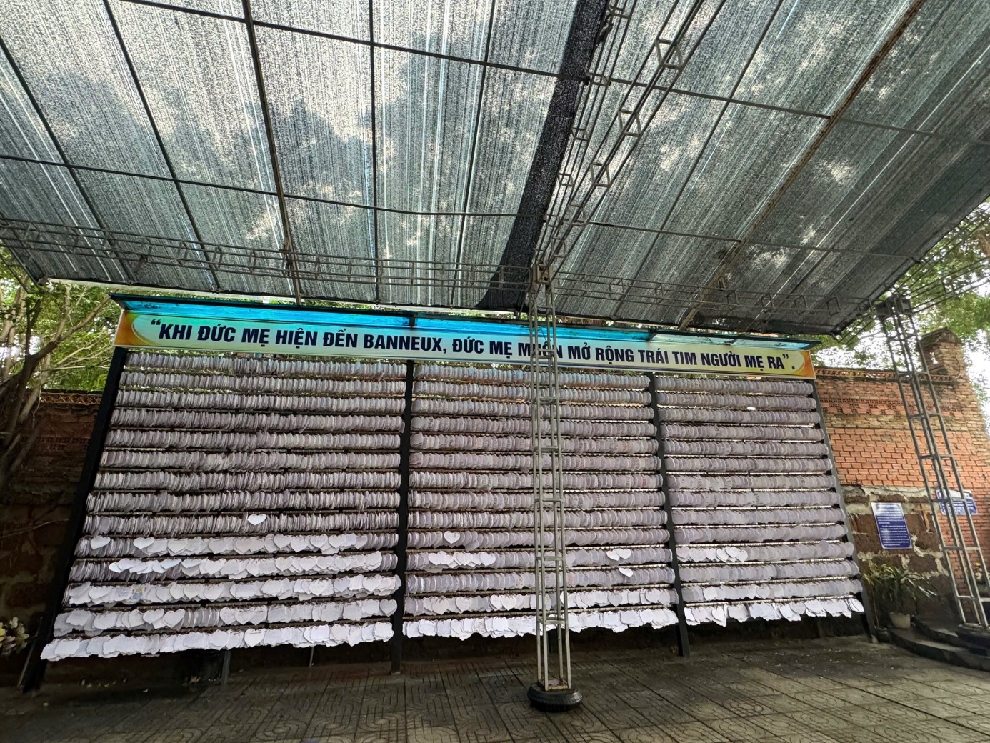 Mỗi người còn tự tay viết lên những lời cầu nguyện, viết lên những tấm thẻ hình trái tim rất dễ thương để ở phía sau tượng Đức Mẹ.