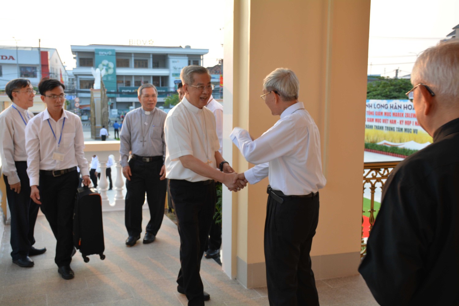 Tiếp đến, Đức Cha Phêrô Giám Mục Giáo Phận Vĩnh Long có đôi lời chào mừng và cảm ơn Đức Hồng Y, quý Đức Cha và tất cả mọi người đang hiện diện. Buổi chào đón kết thúc với giờ cơm tối.