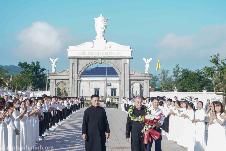 Sau niềm vui gặp gỡ và chào đón của bà con giáo dân dành cho vị cha chung Giáo phận, đoàn đồng tế cùng với cộng đoàn dân Chúa sốt sắng bước vào thánh lễ.
