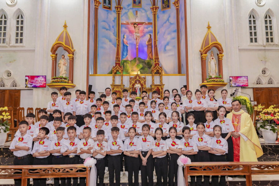 GIÁO XỨ DŨ THÀNH: 74 EM THIẾU NHI ĐÓN NHẬN THÁNH THẦN TÌNH YÊU