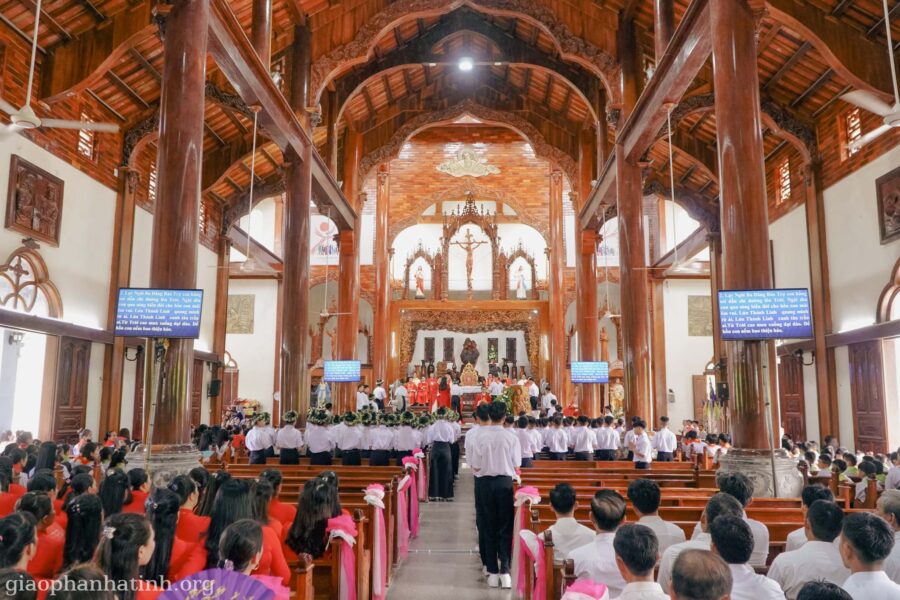 Sáng Chúa Nhật II Giáng sinh ngày 29/12/2024 tại Nhà thờ Chính Tòa Văn Hạnh – Giáo phận Hà Tĩnh, Thánh lễ khai mạc Năm Thánh đã diễn ra một cách trang trọng và sốt sắng. Thánh lễ do Đức cha Louis Nguyễn Anh Tuấn – Giám mục Giáo phận chủ sự, với sự tham dự đông đảo của quý cha, quý tu sĩ nam nữ, chủng sinh và cộng đoàn dân Chúa từ khắp nơi quy tụ về.