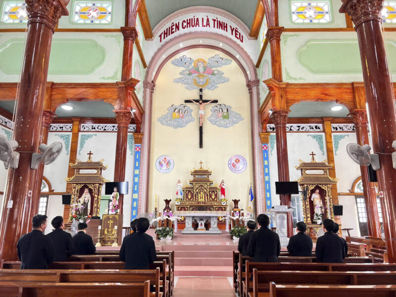 Hiệp dâng Thánh lễ cùng Đức cha còn có Cha Chưởng ấn – Phêrô Nguyễn Đoài, quý Cha trong Giáo hạt Cẩm Xuyên, quý tu sĩ nam nữ và đông đảo cộng đoàn dân Chúa. Sự hiện diện đông đủ ấy không chỉ nói lên tầm quan trọng của ngày lễ, mà còn là lời chứng mạnh mẽ cho một Đức tin sống động và bền bỉ được nuôi dưỡng qua nhiều thế hệ nơi mảnh đất thiêng liêng này.