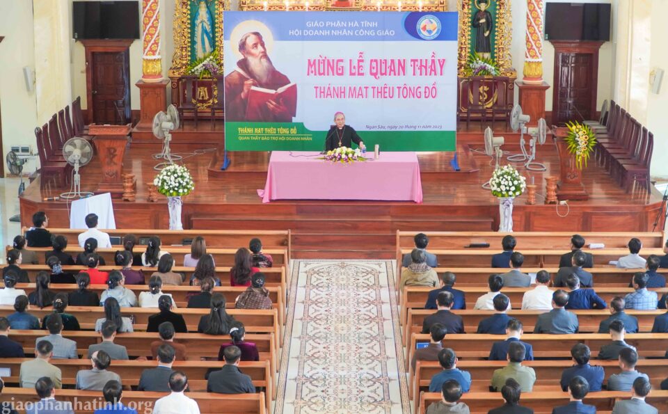 GPHT (22.11.2023) – Sáng thứ Hai ngày 20/11/2023, gần 200 thành viên trong Hội Doanh nhân Công giáo (DNCG) Giáo Phận Hà Tĩnh đã hân hoan tề tựu về giáo xứ Tân Phương trong tình hiệp thông huynh để Mừng lễ Kính thánh Mátthêu Tông đồ – Quan thầy của Hội.