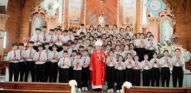 GPHT(18.11.2024)– “Lãnh nhận Thánh Thần qua Bí tích Thêm sức đánh dấu một bước trưởng thành quan trọng trong hành trình đức tin của người Kitô hữu. Từ nay kẻ lãnh nhận Bí tích Thêm sức chính là người tự mình ý thức, tự mình biết Chúa, tự mình tin Chúa qua Hội Thánh”. Đó là lời nhắn nhủ của Đức cha Louis đến 208 em Thiếu nhi trong thánh lễ Ban Bí tích Thêm sức do ngài chủ sự vào sáng Chúa Nhật ngày 17/11/2024 tại Giáo xứ Đồng Troóc.