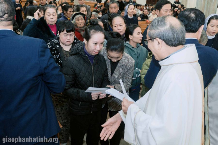 Sau Thánh lễ, Cha GB. Nguyễn Ngọc Hùng bày tỏ tri ân Đức Cha, quý Cha và hết mọi thành phần. Sau đó, Đức cha cùng quý Cha và Ban Caritas đã trao những phần quà yêu thương cho anh chị em. Những món quà nhỏ bé nhưng chứa đựng sự trân trọng, như lời nhắc rằng mỗi người dù mang trong mình khiếm khuyết nào đều được Chúa yêu thương và Giáo hội nâng đỡ.