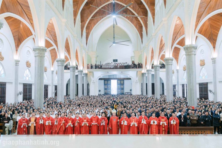 Thánh lễ ngày hành hương do Đức cha Louis Nguyễn Anh Tuấn – Giám mục Giáo phận chủ tế, cùng đồng tế với ngài có quý cha Toà Giám mục, quý trong giáo hạt Minh Cầm cùng sự hiệp thông của đông đảo tu sĩ nam nữ, chủng sinh và gần 3.000 tín hữu. Sự quy tụ đông đảo ấy như một bức tranh đẹp của sự hiệp nhất, phản chiếu sức sống thiêng liêng nơi gia đình Giáo phận Hà Tĩnh.