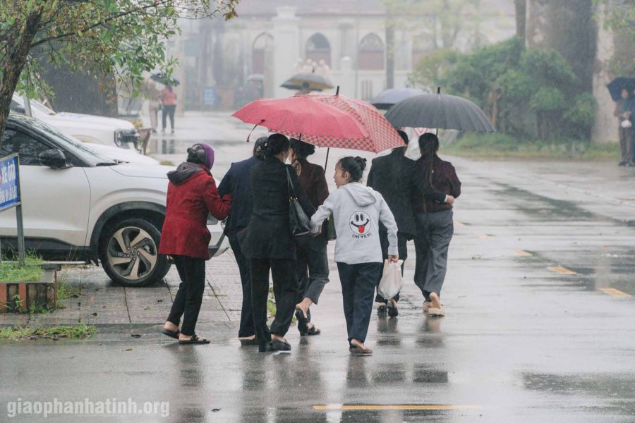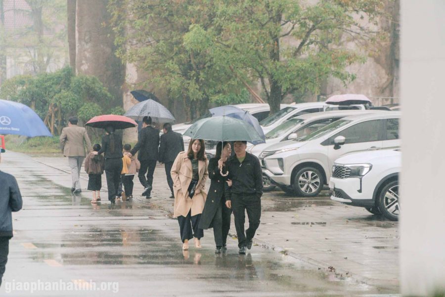 Khoảng 07h00, khuôn viên nhà thờ Chính Toà rộn ràng trong niềm vui và chan chứa ân phúc. Mặc dù tiết trời có mưa và lạnh, thế nhưng từng lớp người vẫn lũ lượt tìm về điểm hành hương, mang theo niềm xúc động, lòng biết ơn và thao thức trở về với Chúa. Sự gặp gỡ nhau trong tình gia đình giáo phận làm cho bầu khí thêm ấm áp, hiệp nhất.