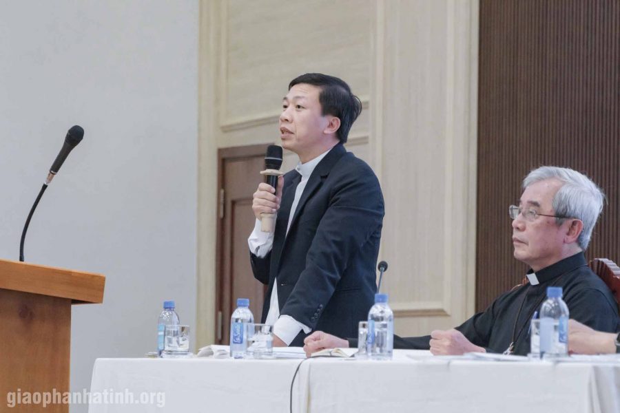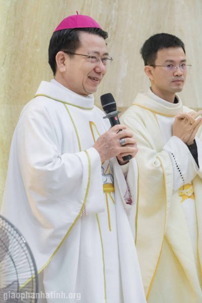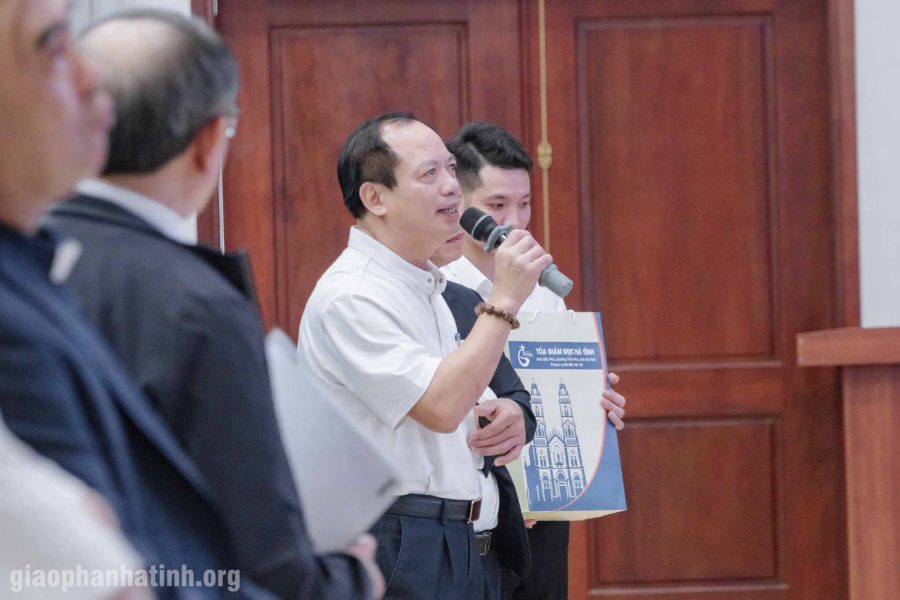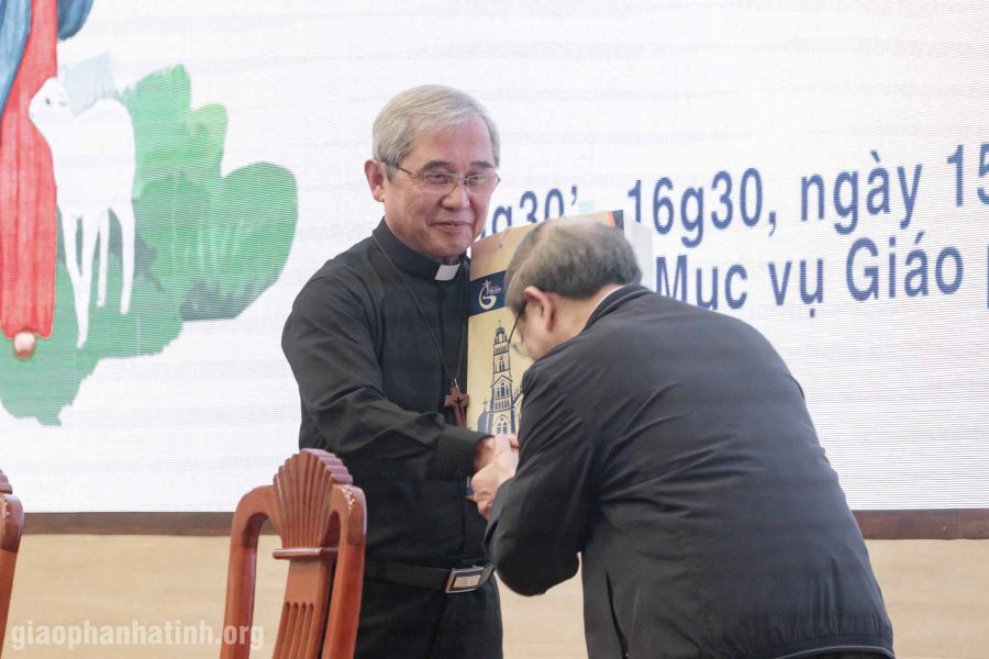 Cuối Thánh lễ, Cha Phêrô Hoàng Biên Cương – Phó Chủ tịch Hội đồng Linh mục Giáo phận, thay lời cho Linh mục đoàn, bày tỏ tâm tình tri ân sâu sắc đến Đức cha giảng phòng. Vì lòng yêu mến Đức Kitô và tình thân mục tử dành cho Giáo phận Hà Tĩnh, Đức cha Phêrô đã hiện diện, đồng hành và chia sẻ những đề tài thiết thực trong bối cảnh Năm Thánh Hy Vọng.
