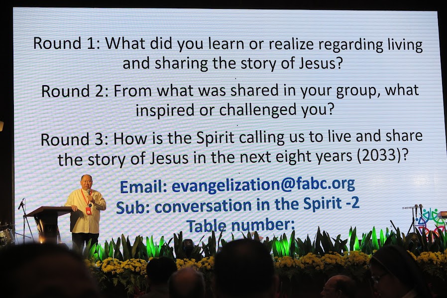 Ban tổ chức đã tóm gọn kết quả cuộc Đối thoại trong Thánh Thần ngày hôm trước trong một câu đầy ý nghĩa. “Chúa Thánh Thần đang mời gọi Giáo hội tại châu Á đào sâu đời sống nội tâm trong Chúa Kitô, lắng nghe với lòng thương xót, cùng nhau tiến bước trong tính hiệp hành, làm chứng cho niềm hy vọng qua việc phục vụ khiêm tốn và can đảm, xây dựng những nhịp cầu xuyên văn hóa và tôn giáo, và loan báo Tin mừng qua những đời sống được bén rễ sâu trong cầu nguyện, hiệp nhất và tình yêu”.