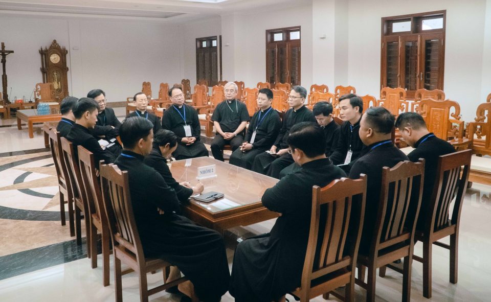 Tiếp đến, vào lúc 9g30, quý cha cùng chia sẻ và trao đổi theo nhóm, giúp nhau đào sâu hơn những cảm nghiệm tâm linh vừa nhận được.