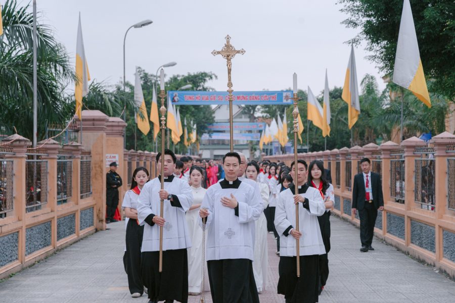 Sau nghi thức, đoàn đồng tế và cộng đoàn cùng tiến về nhà thờ trong bài ca nhập lễ, mở đầu thánh lễ Chúa Kitô Vua trong tâm tình tri ân và cảm tạ.