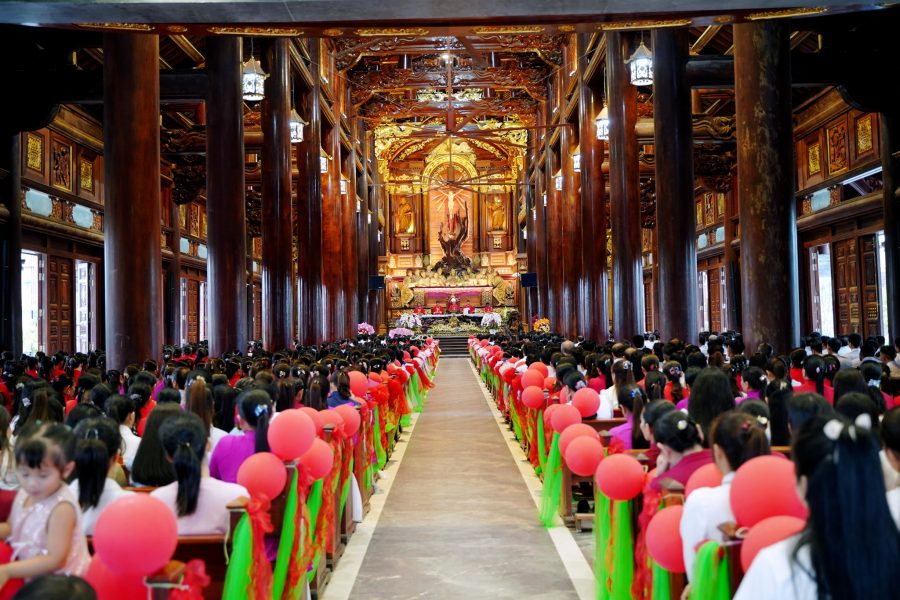Ngay từ đầu giờ chiều, khuôn viên Nhà thờ rộn ràng trong niềm hân hoan và ơn thánh. Cùng với sự hiện diện của Đức cha khả kính, còn có quý Cha trong Giáo hạt Hòa Ninh, quý Tu sĩ nam nữ và đông đảo cộng đoàn dân Chúa cùng quy tụ, hiệp lòng cầu nguyện và chia sẻ niềm vui thiêng liêng với các em.