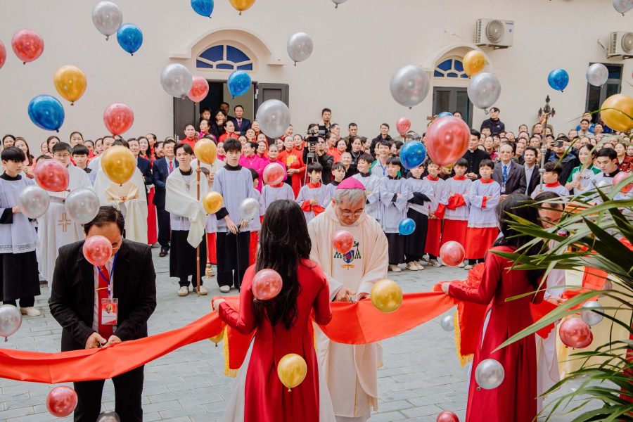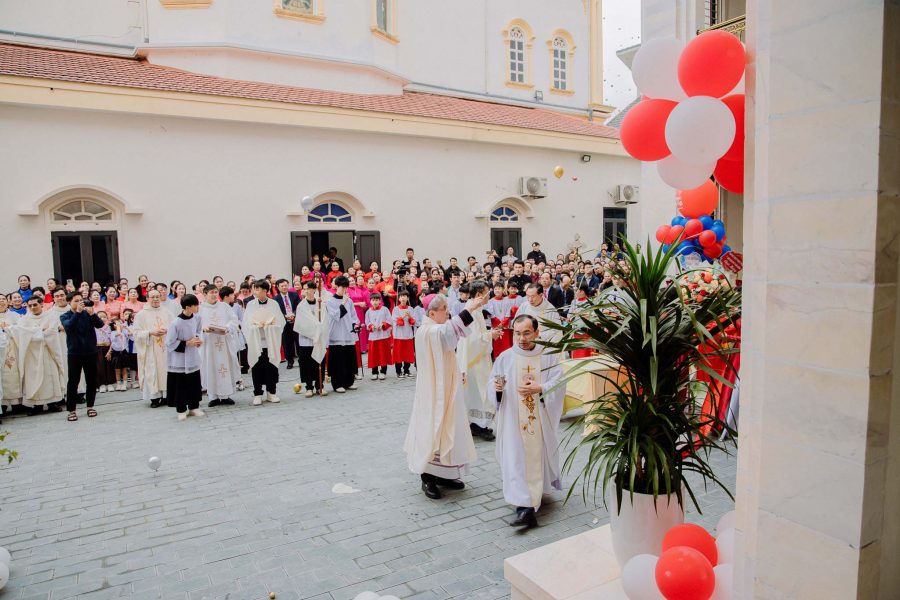 Trước Thánh lễ, Đức cha Louis cùng quý cha và cộng đoàn đã long trọng cử hành nghi thức làm phép và cắt băng khánh thành Nhà Giáo lý. Đây sẽ là nơi ươm mầm và đào tạo đức tin cho các thế hệ thiếu nhi, giới trẻ; là không gian sinh hoạt, gặp gỡ và lớn lên trong đời sống đức tin của giáo họ.