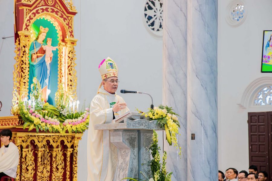 Thánh lễ do Đức cha Louis Nguyễn Anh Tuấn – Giám mục Giáo phận chủ sự. Đồng tế với ngài có cha Tổng Đại diện GB. Nguyễn Khắc Bá, cùng đông đảo quý cha trong và ngoài Giáo phận, quý chủng sinh, tu sĩ nam nữ, quý khách và cộng đoàn dân Chúa trong niềm hiệp thông sâu xa.