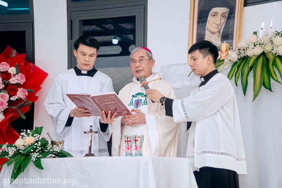 Trước Thánh lễ, Đức cha Louis đã chủ sự nghi thức làm phép và cắt băng khánh thành Nhà Quý Sơ trước sự hiện diện đông đảo của quý cha trong và ngoài Giáo hạt Tam Tòa. Ngôi nhà mục vụ của quý sơ hôm nay không chỉ là một công trình vật chất, nhưng còn là dấu chỉ sống động cho tình yêu Đức Kitô thúc bách các nữ tu dấn thân phục vụ người nghèo và loan báo Tin Mừng tại vùng đất còn nhiều khó khăn này.