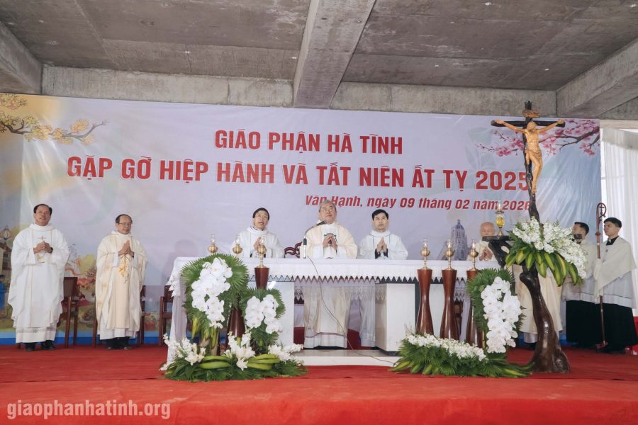 GPHT(10.02.2026) – Trong tâm tình tạ ơn Thiên Chúa khi năm Ất Tỵ dần khép lại và hướng về Xuân mới Bính Ngọ 2026, sáng thứ Hai, ngày 09/02/2026, Gia đình Giáo phận Hà Tĩnh đã cùng nhau quy tu tại khuôn viên Nhà Chung Giáo phận. Giữa tiết trời se lạnh đầu xuân, Đức cha Louis Nguyễn Anh Tuấn, linh mục đoàn Giáo phận, quý chủng sinh, đại diện quý tu sĩ các dòng tu, các hội đoàn, Hội đồng Mục vụ các giáo xứ, chuẩn giáo xứ, giáo họ, Gia đình Thánh Mát-thêu cùng quý khách đã hiện diện trong buổi gặp gỡ và Thánh lễ Tất niên, được cử hành trong tinh thần Hiệp hành và cùng nhau xây dựng Nhà Chung của Giáo phận.