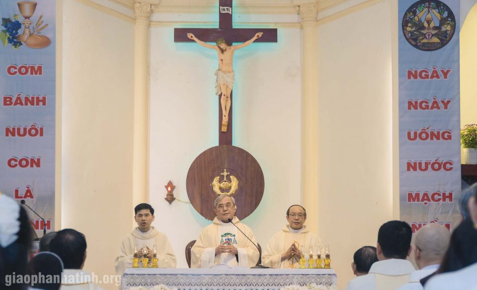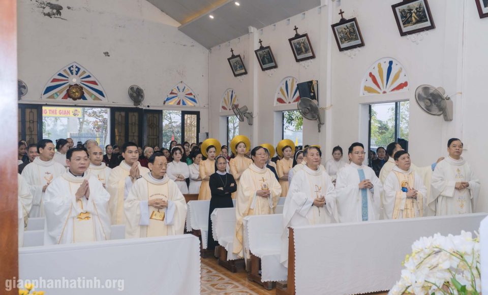Hiệp dâng Thánh lễ với Đức cha có Cha Tổng Đại Diện Gioan Baotixita, quý Cha, quý Tu sĩ, quý Chủng sinh và đông đảo cộng đoàn dân Chúa trong và ngoài giáo họ.