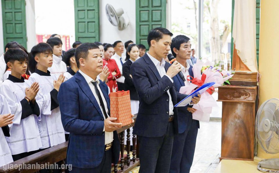 Cuối Thánh lễ, đại diện Giáo xứ đã gửi lời chúc mừng năm mới đến Đức Cha, quý Cha và toàn thể cộng đoàn hiện diện.