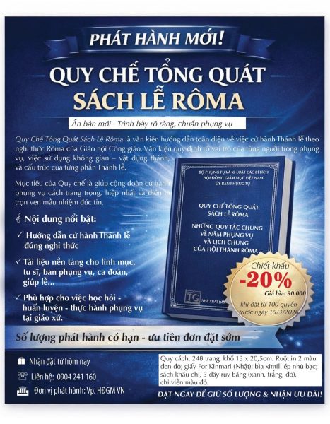 Văn phòng Hội đồng Giám mục Việt Nam thông báo về việc phát hành Quy chế tổng quát Sách lễ Rôma vào ngày 19/3/2026.