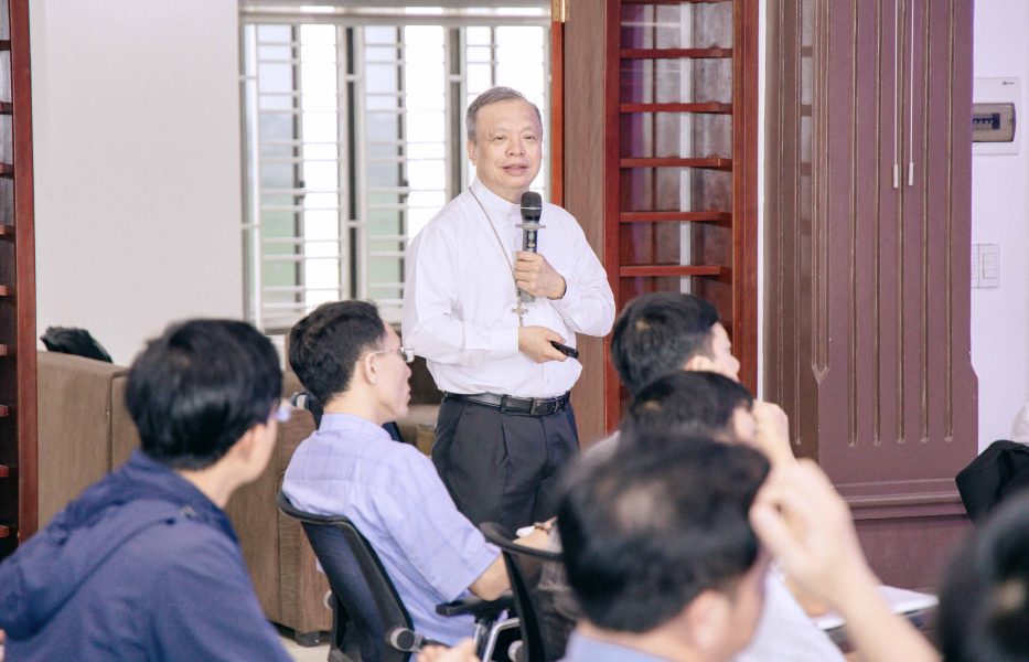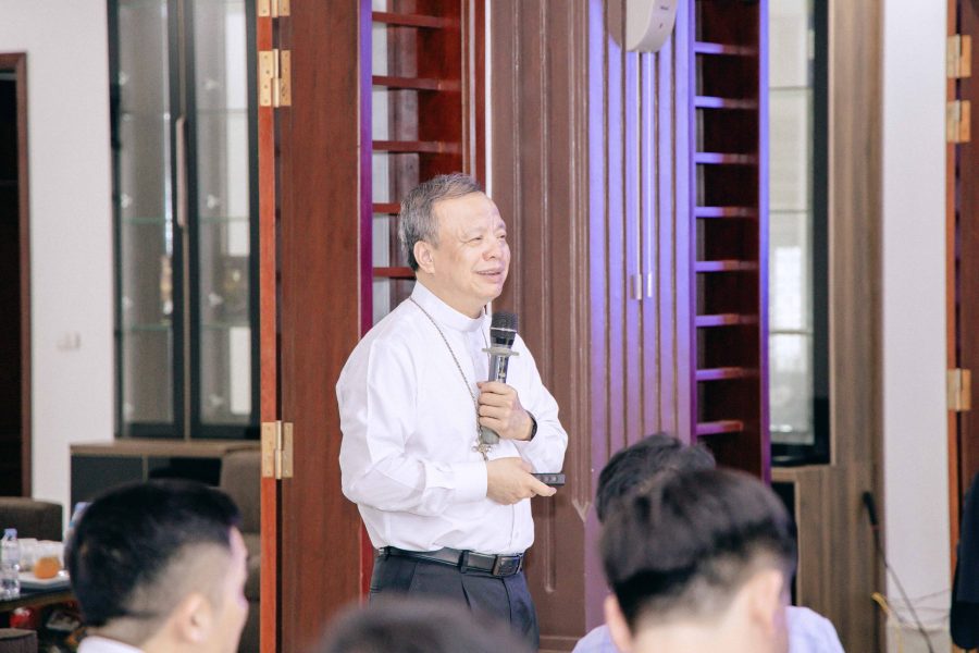 Tiếp nối chương trình là phần học hỏi do Đức cha Phêrô Nguyễn Văn Viên hướng dẫn, với sự đồng hành của cha Phaolô Bùi Đình Cao – Trưởng ban Đào tạo, đặc trách Phó tế và linh mục trẻ, cùng cha quản lý Giuse Phan Đình Trung.