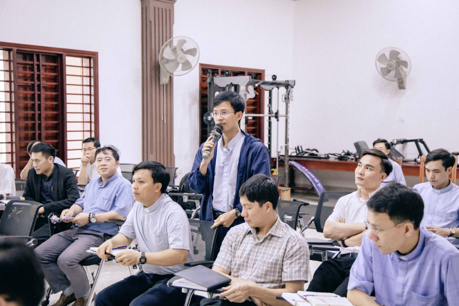 Sau phần trình bày, anh em linh mục đã cùng nhau thảo luận, chia sẻ kinh nghiệm mục vụ, những thao thức và cả những thử thách trong hành trình phục vụ. Những giờ phút ấy không chỉ là trao đổi học thuật, mà còn là sự nâng đỡ thiêng liêng, giúp mỗi người cảm nhận rõ hơn sự đồng hành của Giáo Hội trong đời sống linh mục.