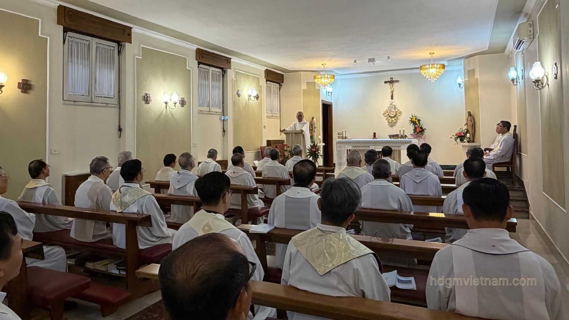 Ngay từ sáng sớm, tại Foyer Phát Diệm, các Đức Giám mục đã quy tụ trong giờ nguyện gẫm và hiệp dâng Thánh lễ tạ ơn Thiên Chúa, đồng thời phó dâng toàn bộ hành trình Ad Limina dưới sự hướng dẫn của Chúa Thánh Thần. Đây là những giây phút thiêng liêng để các mục tử chuẩn bị tâm hồn trước khi bước vào những cuộc gặp gỡ quan trọng với các bộ của Toà thánh – những cuộc gặp gỡ không chỉ là đòi hỏi của giáo luật, mà còn diễn tả tình hiệp thông Giáo hội.
