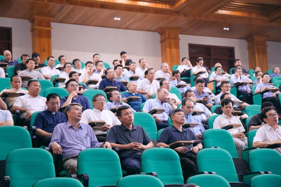 Vào lúc 14 giờ, Cha Phêrô Nguyễn Văn Vinh chia sẻ đề tài mang tính thực tiễn về sứ vụ lãnh đạo của linh mục quản xứ trong bối cảnh Giáo Hội hiệp hành. Từ thực trạng mục vụ, các mối tương quan trong đời sống linh mục, cho đến những thuận lợi, khó khăn và thách đố đang đặt ra, bài chia sẻ đã gợi mở nhiều suy tư thiết thực. Các tiết học tiếp theo và phần thảo luận giúp quý cha cùng nhau lắng nghe, đối thoại và tìm hướng đi phù hợp trong việc thi hành sứ vụ.