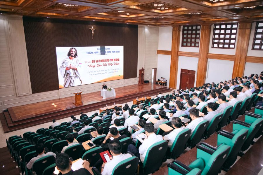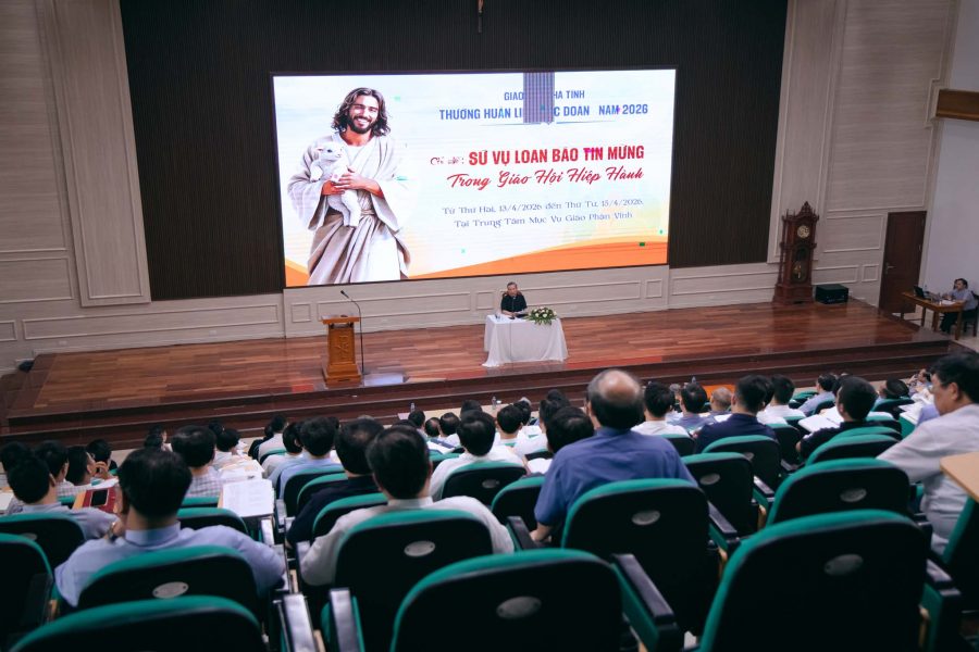 GPHT (13.4.2026) – Sáng Thứ Hai, ngày 13/4/2026, tại Trung Tâm Mục Vụ Giáo phận Vinh, Linh mục đoàn Giáo phận Hà Tĩnh đã chính thức khai mạc Kỳ Thường huấn năm 2026, theo chương trình chung của Giáo phận và sự hướng dẫn của Đức Cha Chủ chăn. Đây là dịp thường niên quy tụ linh mục đoàn trong tinh thần hiệp thông, nhằm bồi dưỡng đời sống thiêng liêng, đào sâu kiến thức và làm mới sứ vụ mục tử trong bối cảnh Giáo Hội hôm nay.