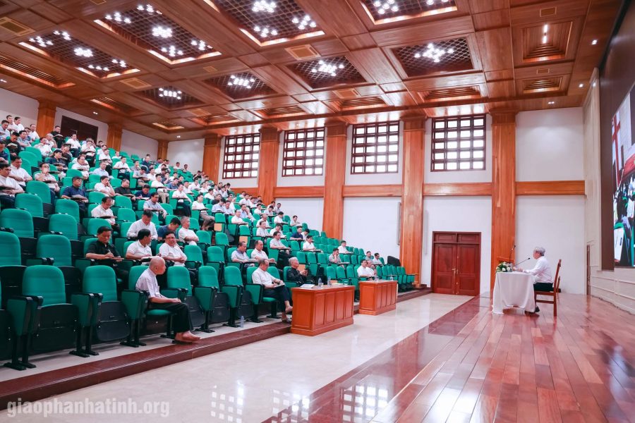 Trong khuôn khổ Kỳ Thường huấn Linh mục đoàn Giáo phận Hà Tĩnh năm 2026, diễn ra tại Trung Tâm Mục Vụ Giáo phận Vinh từ ngày 13 đến 15/4/2026, Đức cha Louis Nguyễn Anh Tuấn đã có phần chia sẻ đề tài mang nhiều chiều sâu mục vụ với tựa đề: “Sỏi Đá Cũng Cần Có Nhau”.