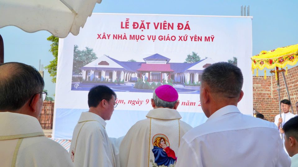 Từ đó, Đức cha mời gọi cộng đoàn sống tinh thần hiệp thông, quảng đại cộng tác trong việc xây dựng Nhà mục vụ, nhưng trên hết là xây dựng đời sống đức tin bằng tình yêu và sự sẻ chia. Ngài cũng nhấn mạnh: công trình vật chất hôm nay cần được đặt nền trên đời sống thiêng liêng vững chắc; mỗi gia đình hãy trở thành một “nhà thờ nhỏ”, được xây dựng trên nền tảng Lời Chúa. Chính mỗi tín hữu là những “viên đá sống động” góp phần xây dựng Giáo xứ Yên Mỹ và Giáo phận Hà Tĩnh.